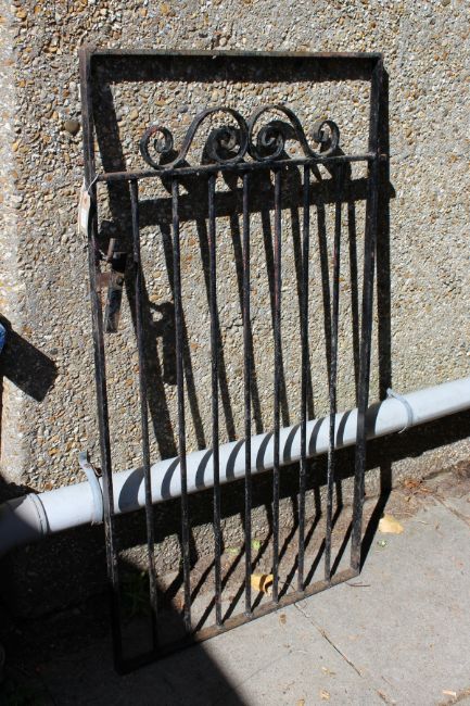 A wrought iron garden gate.