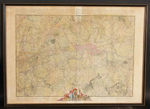 John Rocque, A Map of London, 18th Century, later Hand-Coloured, 20" x 26". Along with a Plan of Langborne Ward and Candlewick Ward, 12" x 14", and a Plan of Bishopsgate Ward, 9" x 15", (3).