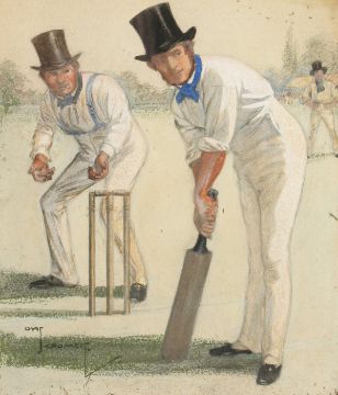 Charles Exeter Devereux Crombie (1885-1967) British, A Scene of a Cricket Match, Watercolour and Gouache, Signed, 8" x 7".