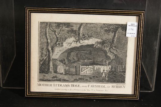 'Bowles's New Medium Map of Surrey', 18th Century Hand-Coloured. 9" x 13", along with Hawkin's 'Mother Ludlam's Hole near Farnham, Surrey', 6" x 9".