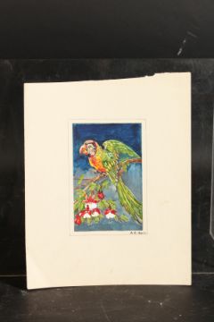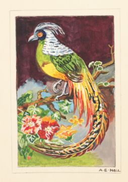 A.E. Hall. Parakeets and Birds of Paradise, a Set of Four Watercolours, 5.5" x 3.5", Unframed.
