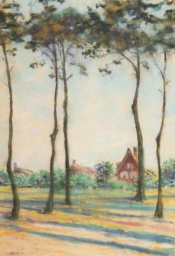 Early 20th Century Continental School. A View of Houses through Trees, Pastel, Indistinctly Signed. 22" x 16".