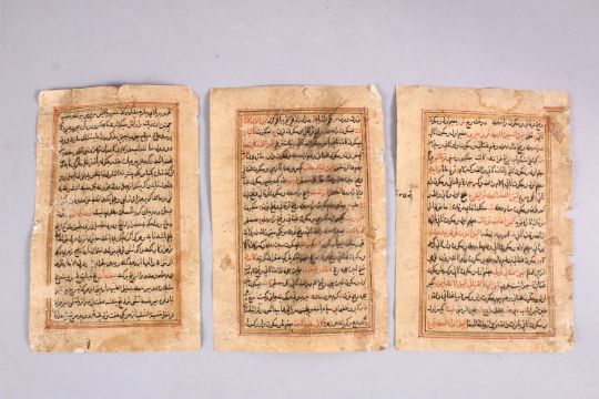 THREE GOOD 19TH / 20TH CENTURY INDO / PERSIAN MINIATURE PAINTINGS OF BIRDS, painted finely on calligraphic sections depicting three varying studys of birds, 18cm x 12cm