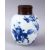 A GOOD CHINESE BLUE & WHITE KANGXI PORCELAIN JAR & COVER, decorated with decoration of boys in landscapes, with a carved wooden cover, the base with double blue rings, 14cm high.