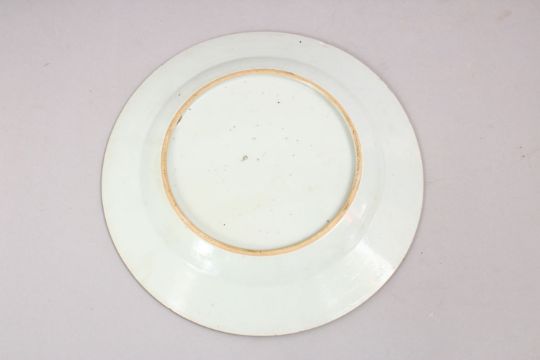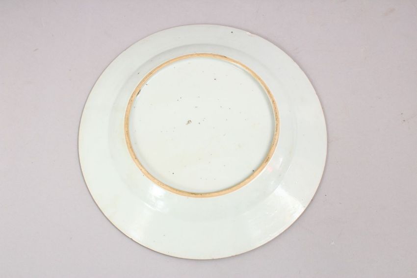 AN 18TH CENTURY CHINESE QIANLONG FAMILLE ROSE PORCELAIN PLATE, with simplistic floral band decoration, 22.5cm.
