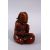 A GOOD JAPANESE MEIJI PERIOD CARVED WOODEN OKIMONO OF AN ONI BEATING A MOKUGYO, in a seated position wearing a hat, beating upon a mokugyo, 8.5cm high x 6cm wide.