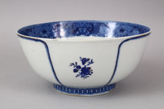 A FINE 18TH CENTURY CHINESE QIANLONG ARMORIAL PORCELAIN BOWL, the bowl with a finely painted band of qianlong decoration, the exterior with famille rose armorial decoration with gilt traces, 19cm.