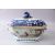 A 18TH / 19TH CENTURY CHINESE BLUE & WHITE FAMILLE ROSE PORCELAIN TUREEN AND COVER, decorated with figures and flora, with moulded handles and finial, 24cm x 36cm.