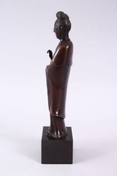 A CHINESE BRONZE FIGURE OF GUANYIN, in traditional robes, on a fitted base, 15cm ( excluding base ).