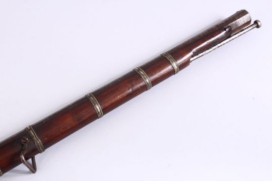 A 19TH CENTURY PERSIAN RIFLE WITH AN EARLY OTTOMAN WATERED STEEL BARREL, 120cm