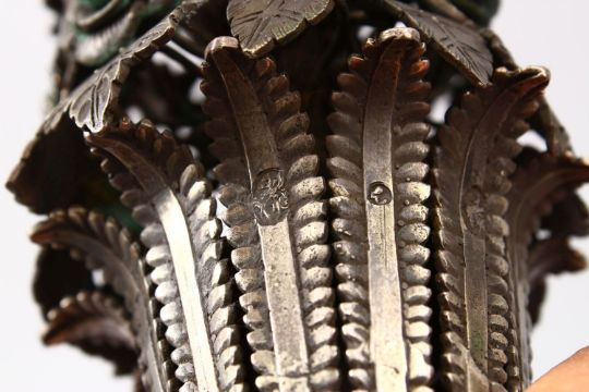 A 19TH CENTURY BOHEMIAN GLASS HUQQA BASE FOR THE ISLAMIC MARKET, including a large signed silver huqqa top, 44cm