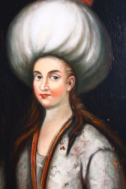 A PAIR OF TURKISH OIL ON BOARD PAINTING OF SULTAN & LADY, 40CM X 30CM