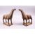 A GOOD PAIR OF CHINESE TANG / STYLE POTTERY HORSE FIGURES, both with heads aloft, the bases with labels, possibly earlier, 24cm high x 29cm wide.