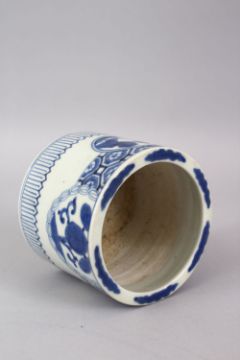 A GOOD CHINESE BLUE & WHITE PORCELAIN BRUSH WASH, decorated with roundel of flora and landscapes, 11cm dia.