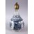 A 17TH CENTURY PERSIAN SAFAVID BLUE & WHITE BOTTLE VASE, decorated with panels of flora, with a metal mount and stopper, 19.5cm high.