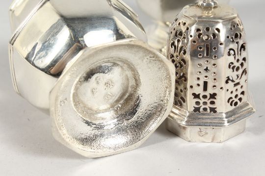 A GOOD PAIR OF GEORGE I OCTAGONAL CASTLES, 5ins high, crested.