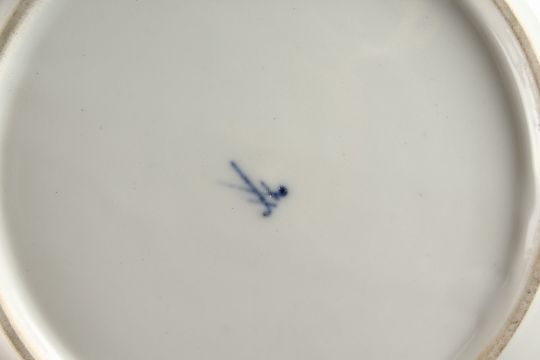 A SUPERB LARGE DRESDEN DESSERT SET, with pierced borders painted with flowers and figures, comprising two tier comport, pair of comports and twenty-four plates.