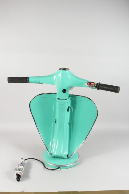 A LARGE TABLE LAMP MODELLED AS THE FRONT END OF A VESPA SCOOTER.