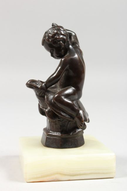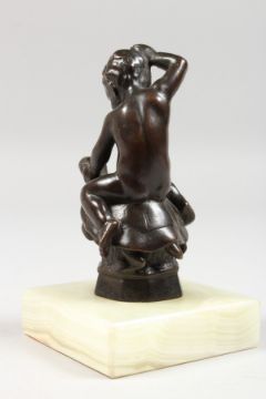 A GOOD SMALL BRONZE OF A PUTTI RIDING A TORTOISE.