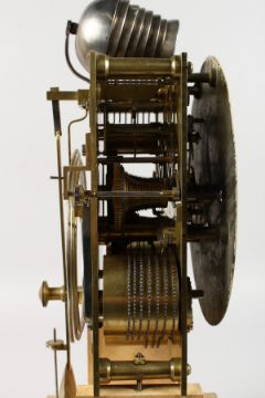 A GOOD 19TH CENTURY DOUBLE VERGE MUSICAL CLOCK MOVEMENT by BOXELL. BRIGHTON, circular painted face, eight-day movement, signed on the brass back-plate Boxell, Brighton, No. 1717.