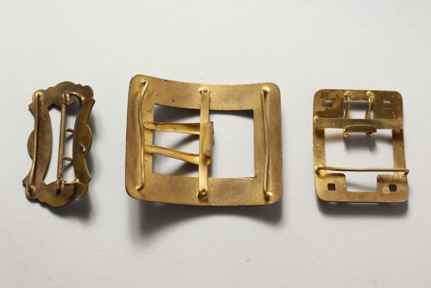 THREE LARGE ENAMEL BUCKLES.
