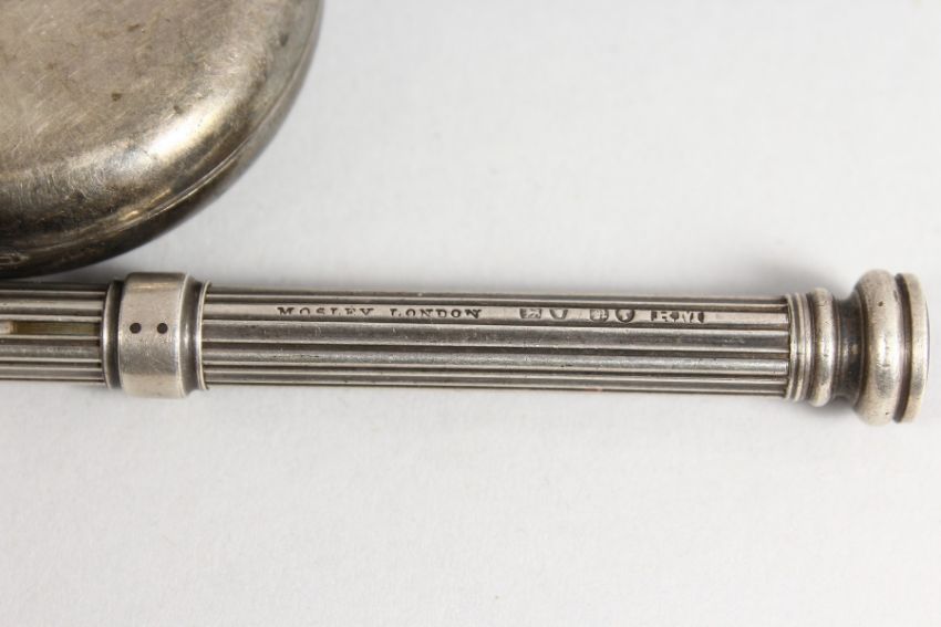 A MIXED LOT OF ITEMS, to include a pocketwatch, vesta, apple corer, propelling pencil. (4)