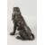 A CAST BRONZE MODEL OF A SEATED BLOODHOUND.