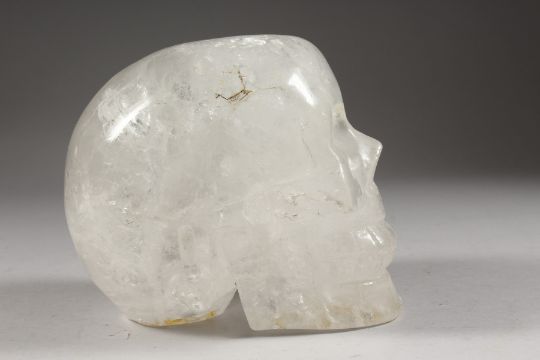 A LARGE CRYSTAL MOSER OF A HUMAN SKULL.