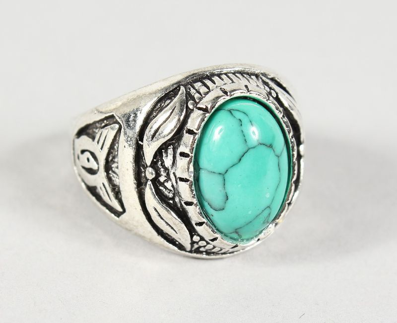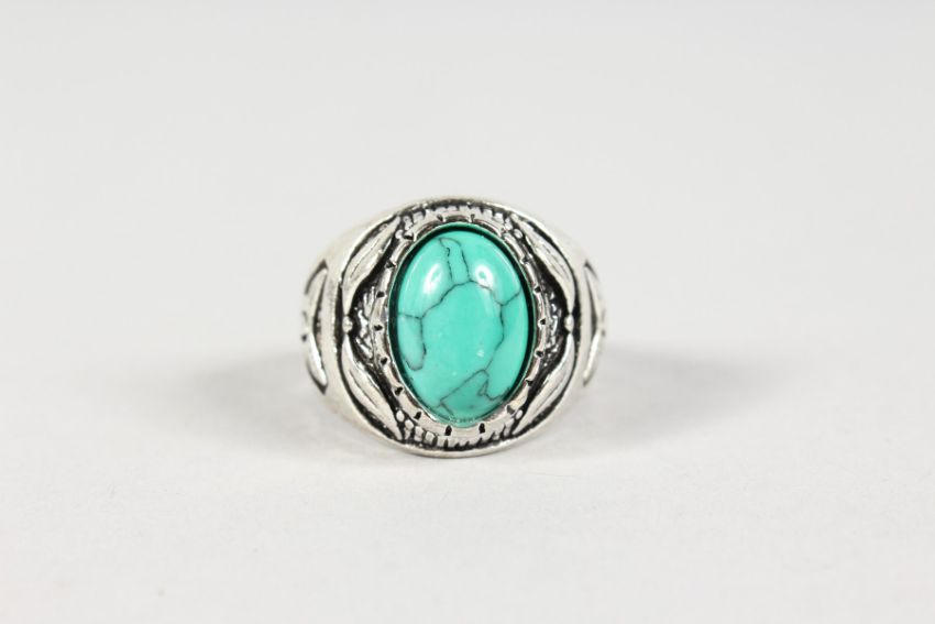 A MEN'S SILVER RING SET WITH A TURQUOISE.