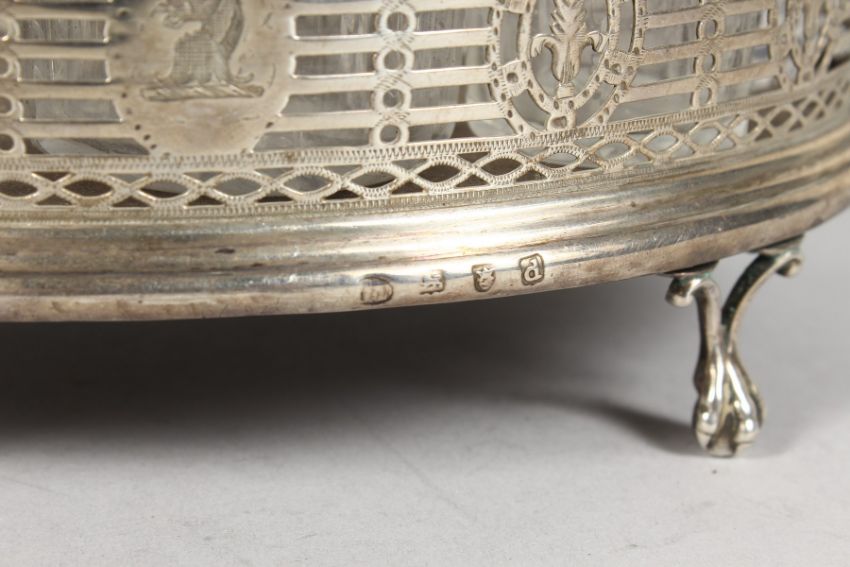 A GEORGE III OVAL PIERCED EIGHT BOTTLE CRUET.