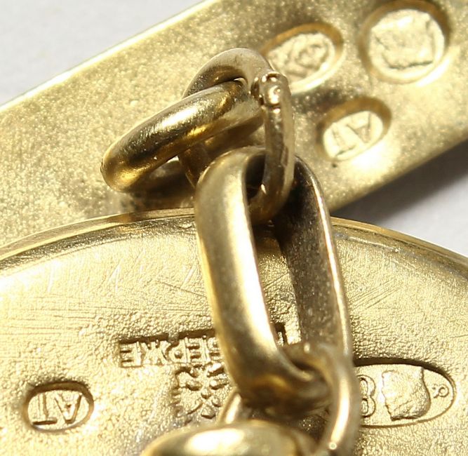 A PAIR OF MODERN RUSSIAN SILVER AND ENAMEL DECORATED DOUBLE EAGLE CUFFLINKS.
