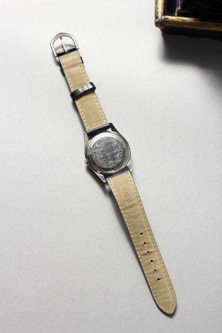 A GENTLEMAN'S CYMA WATCH with leather strap.