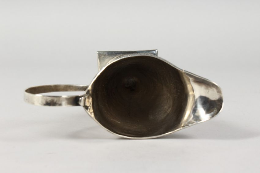 A GEORGE III HELMET SHAPED CREAM JUG.