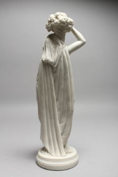 A 19TH CENTURY PARIAN CLASSICAL FEMALE FIGURE, with baskets of grapes.