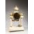 A VERY GOOD LOUIS XVI WHITE MARBLE AND ORMOLU DRUM SHAPED MANTLE CLOCK, with 4.5ins enamel dial, eight day movement and and pillar support.
