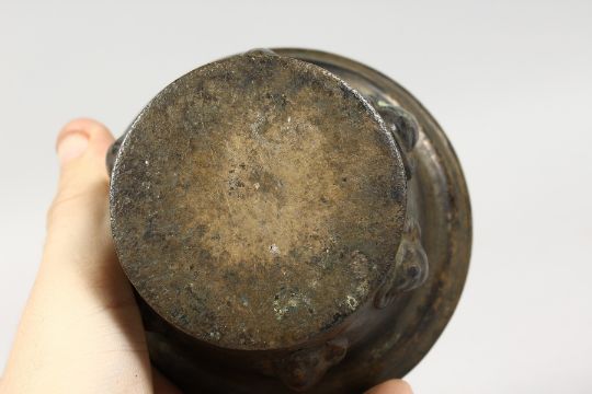 A SMALL 17TH CENTURY BRONZE CIRCULAR MORTAR.