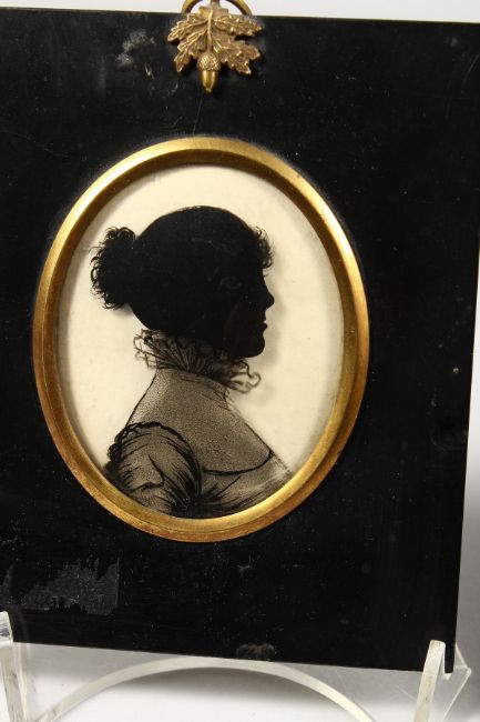 THREE FRAMED SILHOUETTES OF LADIES.