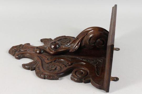 A CARVED OAK WALL BRACKET.