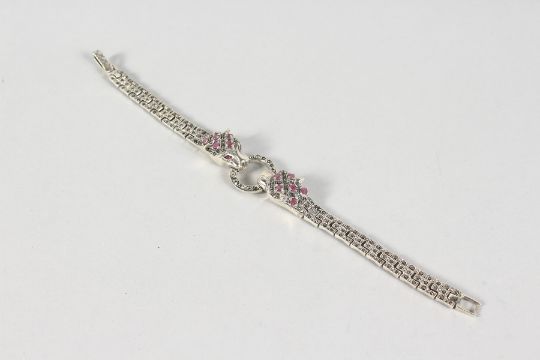A SILVER RUBY SET PANTHER BRACELET.