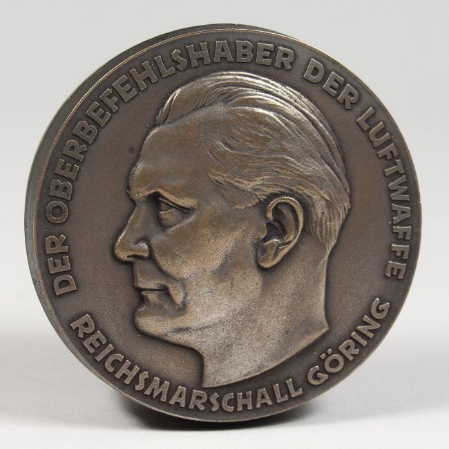 A CIRCULAR EMBOSSED METAL NAZI BOX AND COVER "DER OBERBEFEHLSHABER DER LUFTWAFFE - REICHSMARCHALL GORING"