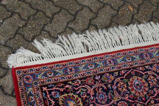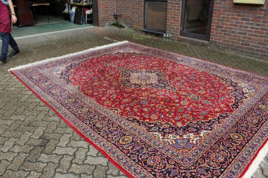 A GOOD LARGE KASHAN CARPET, 20TH CENTURY, claret ground with allover floral decoration.