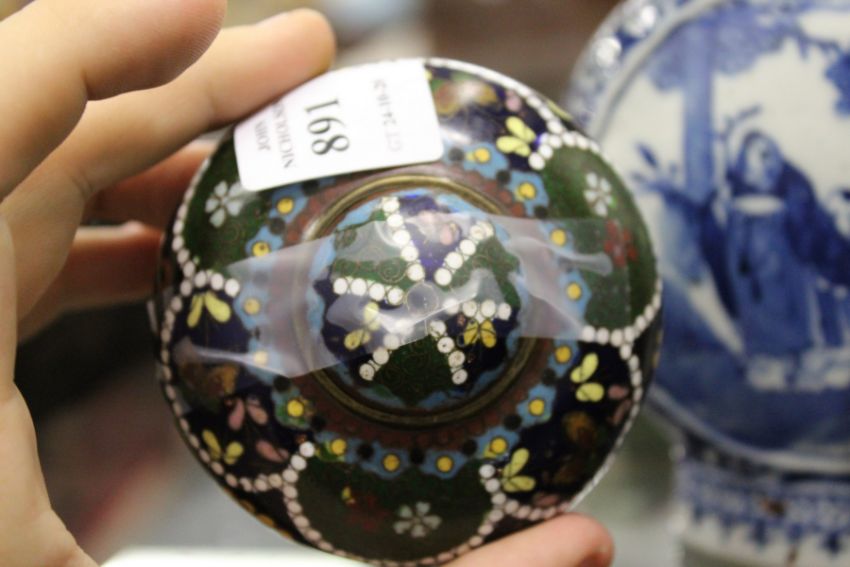 A small cloisonné pot and cover.