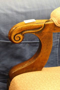 A Victorian mahogany framed open armchair with turned front legs.