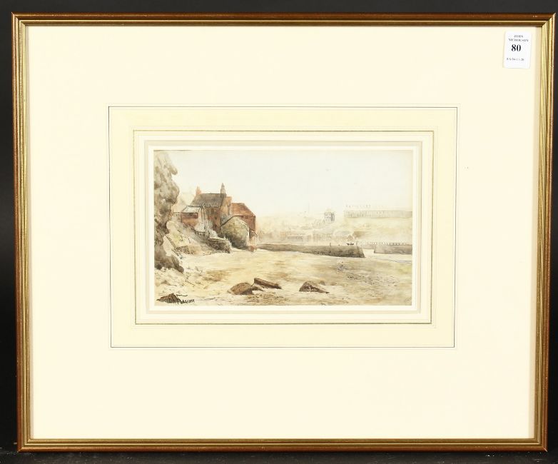 Emile Axel Krause (1871-1945) British, a scene of a harbour entrance, with a town beyond, watercolour, signed 5.25" x 8.5".