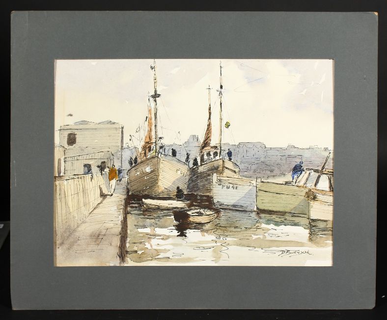 Dudley Burnside (1912-2005) British, 'The Barbican, Plymouth', signed and inscribed verso, 12" x 16", unframed.
