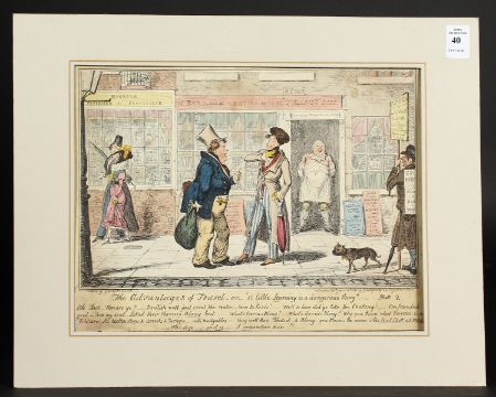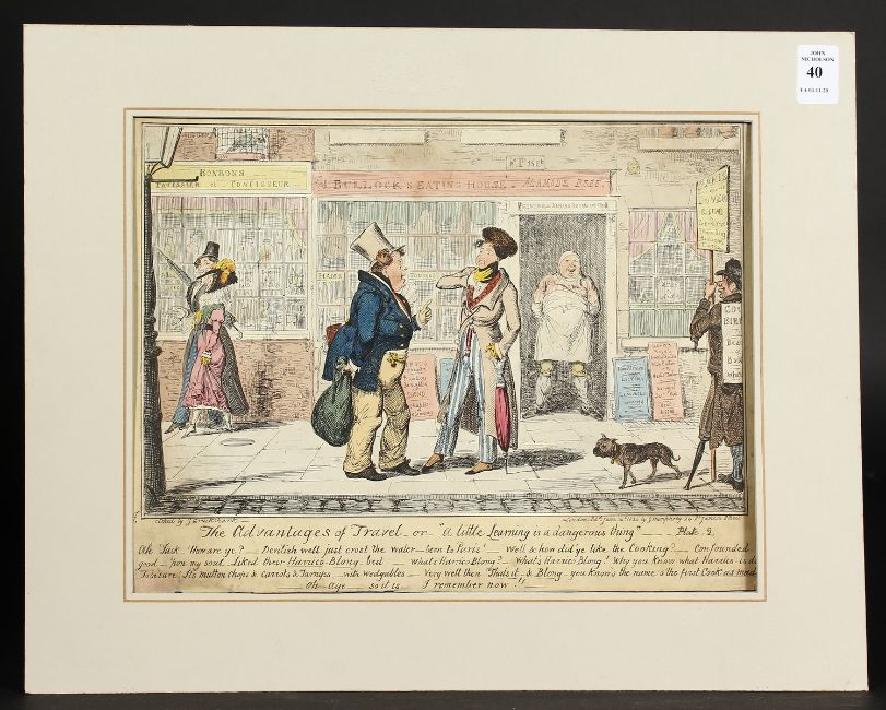 A Cruckshank Etching 'the adventures of travel or a little learning is a dangerous thing', unframed 10" x 13".