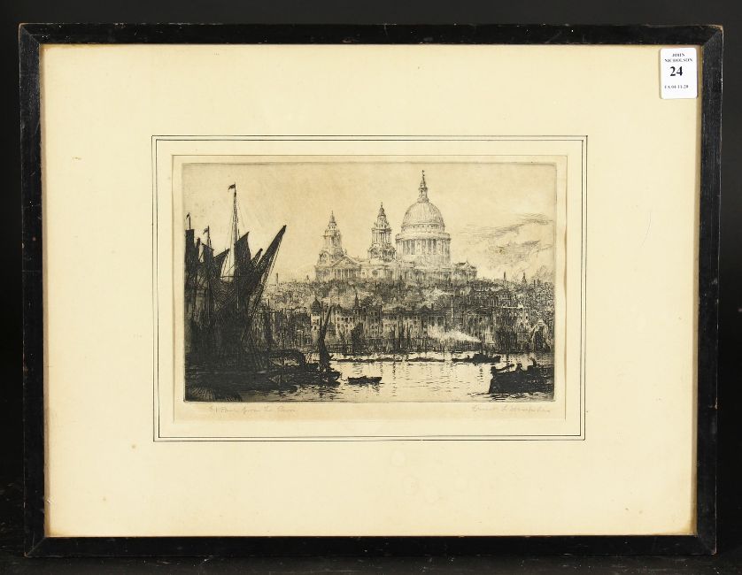 Ernest Llewellyn Hampshire (1882-1944) British, 'Saint Paul's from the River', etching, signed and inscribed in pencil, 6" x 9".