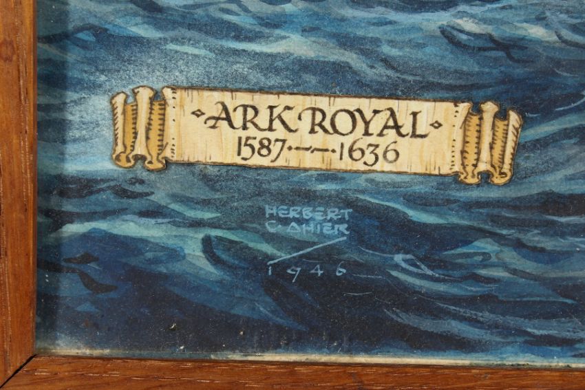 Herbert Ahier (20th century) British, a study of the Ark Royal, watercolour, signed and dated 1946, 15"x10".