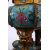 A 20TH CENTURY CHINESE BRONZE & CLOISONNE ENAMEL CENSER / BURNER ON STAND, the body of the censer, with panel decoration of symbolic longevity, in tripod formed lion dog mask legs, the lid with a lion dog finial, on a cloisonne base decorated with native scrolling flora, 53cm high x 41cm wide.