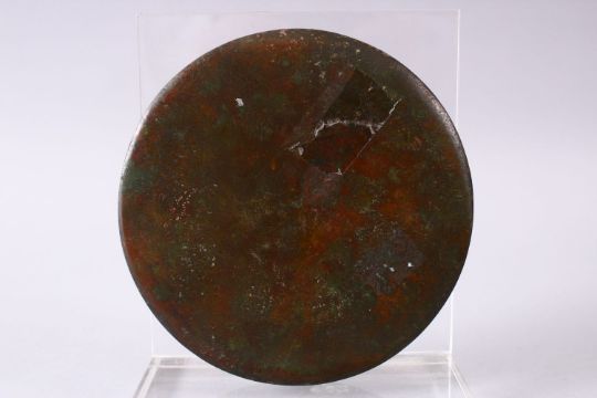 A GOOD 19TH CENTURY OR EARLIER CHINESE BRONZE TANG STYLE MIRROR, with vine decoration and moulded beasts, 13cm.
